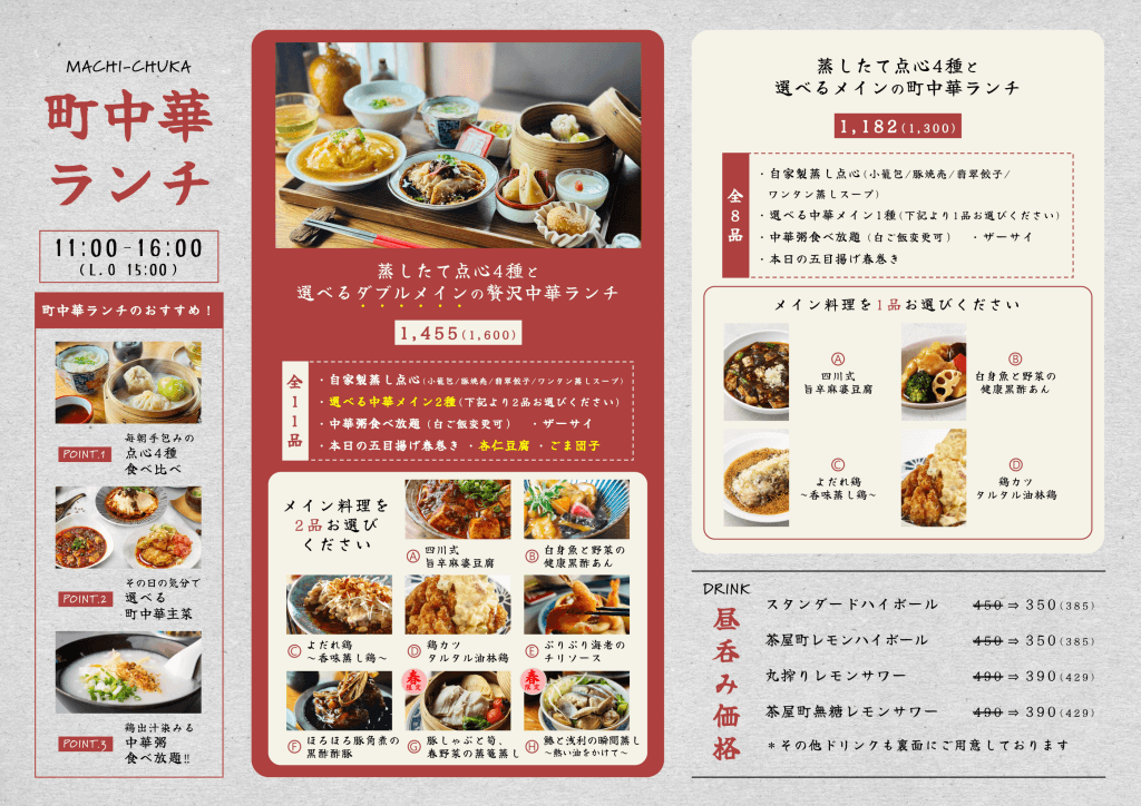 2024.2.29 【鶏と点心と町中華】ランチメニュー ご予約はこちら ▶ https://www.tablecheck.com/shops/toritensinmachichuka/reserve?utm_source=opefac 月~金 ランチメニュー 土日祝 ランチメニュー