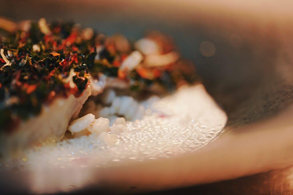 すずきの白ワイン蒸し パプリカとパセリの2種ソース