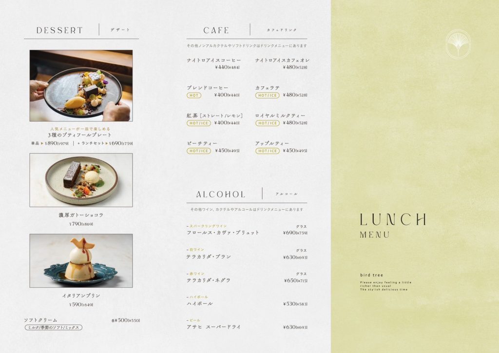11:00~22:00 (L.O.デザート 21:00 / ドリンク 21:30)ディナータイム