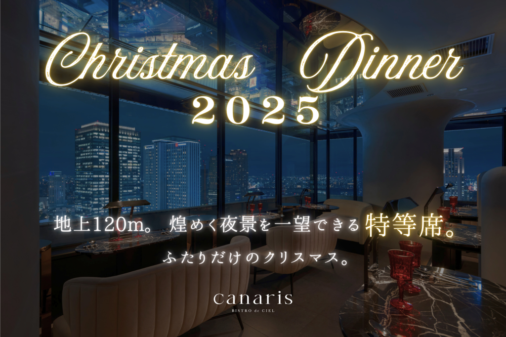 【X’mas Dinner Course】地上120m。パノラマ夜景を彩る12種のクリスマスディナーコース+乾杯スパークリングワイン