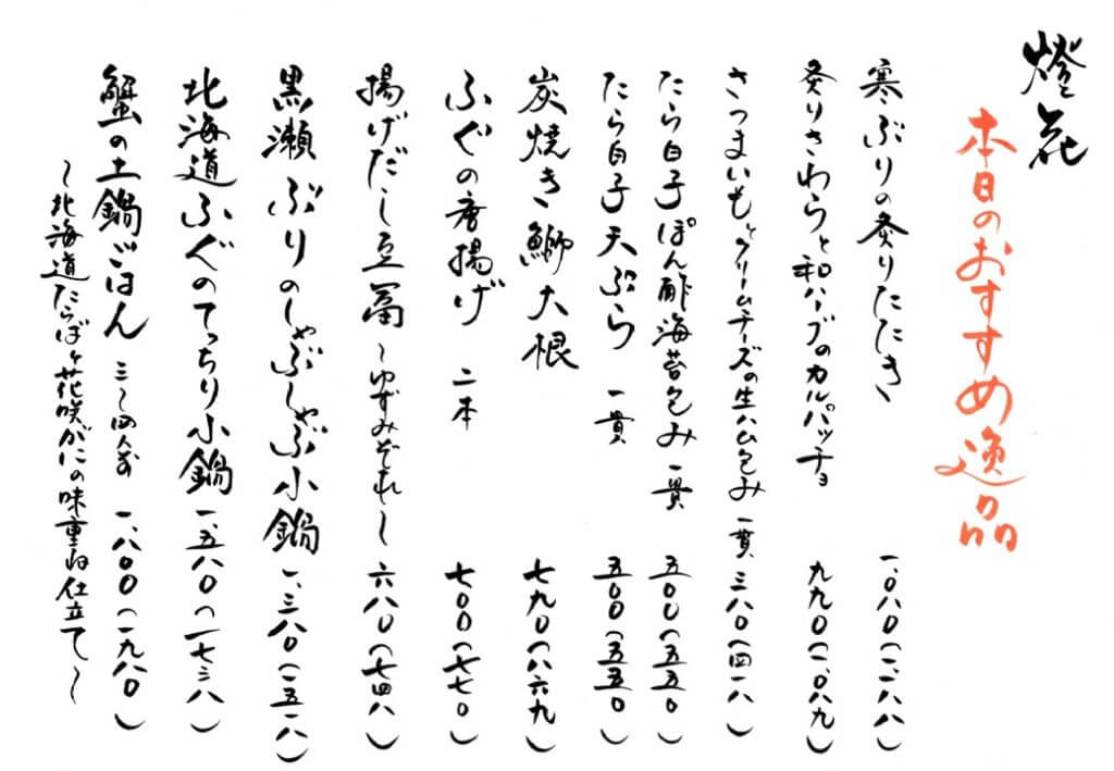 ~11.12月のお品書き~