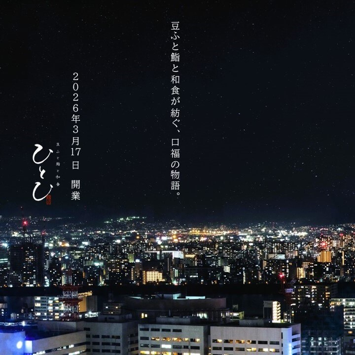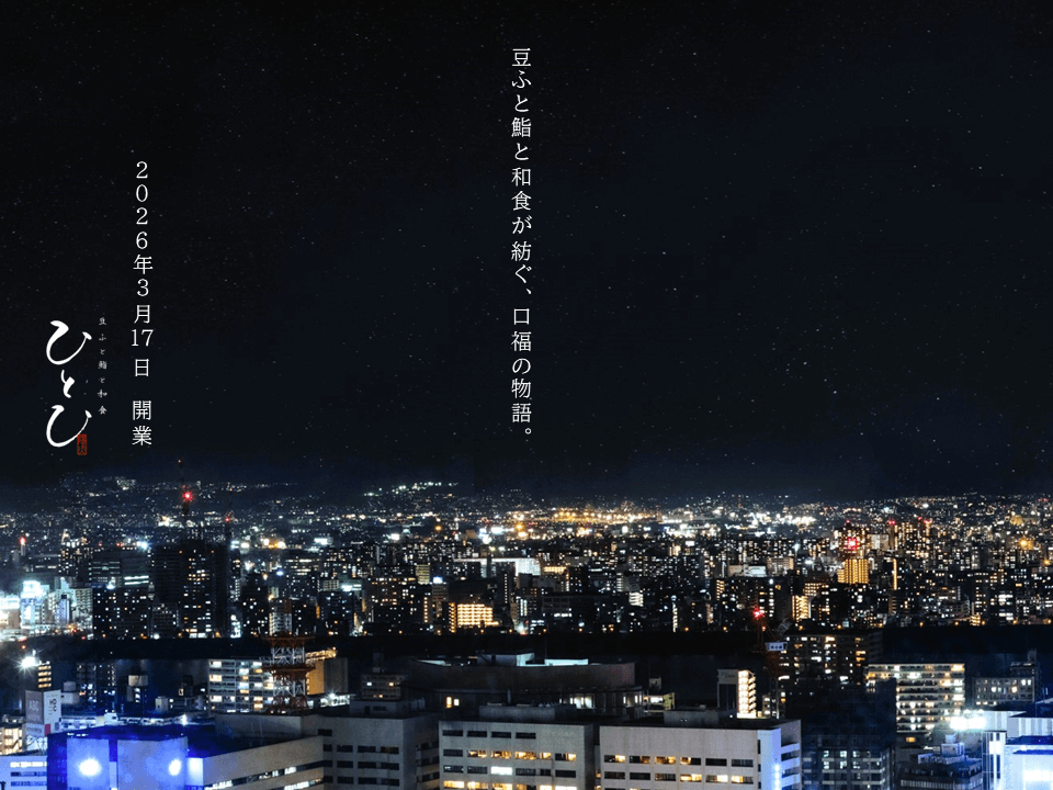 [2026年3月17日開業]梅田/阪急グランドビル30階。 梅田を見下ろす地上120mの景色。 都会の喧騒から離れ「豆ふと鮨と和食が紡ぐ」夜のひとときを。