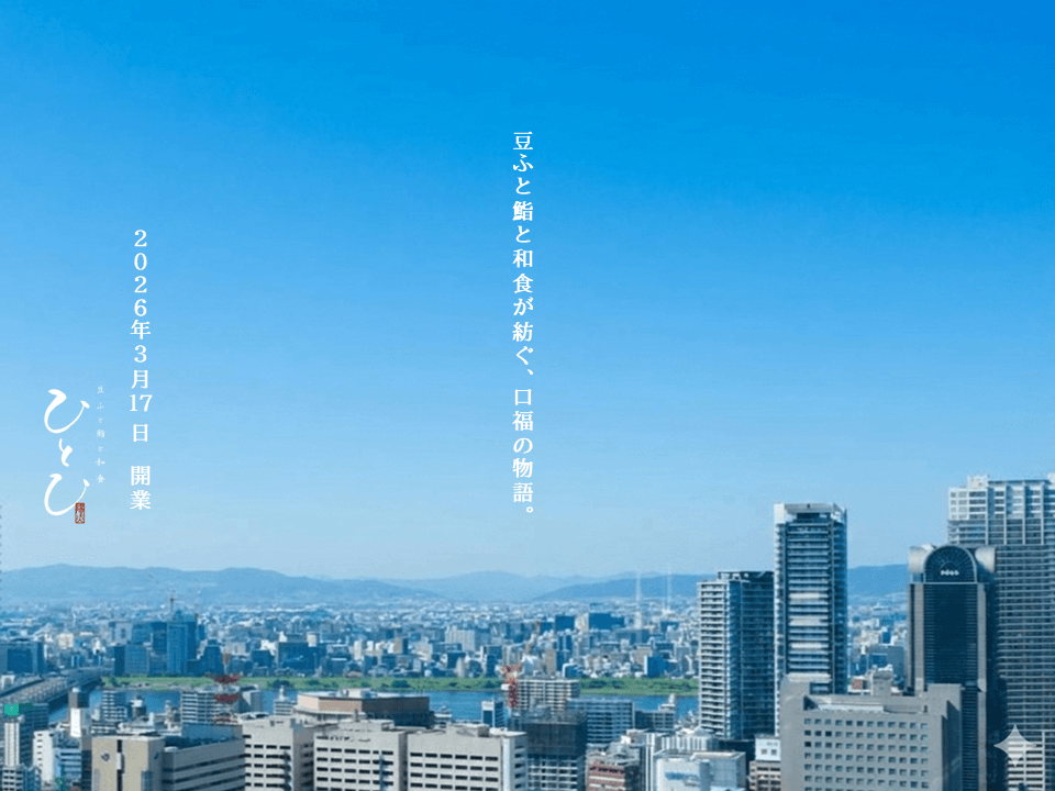 [2026年3月17日開業]梅田/阪急グランドビル30階。 梅田を見下ろす地上120mの景色。 「豆ふと鮨と和食が紡ぐ」優雅なランチタイムを。