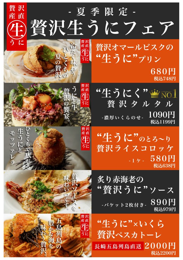 京橋でしか味わえない、贅沢な『生うにフェア』ぜひご体験ください