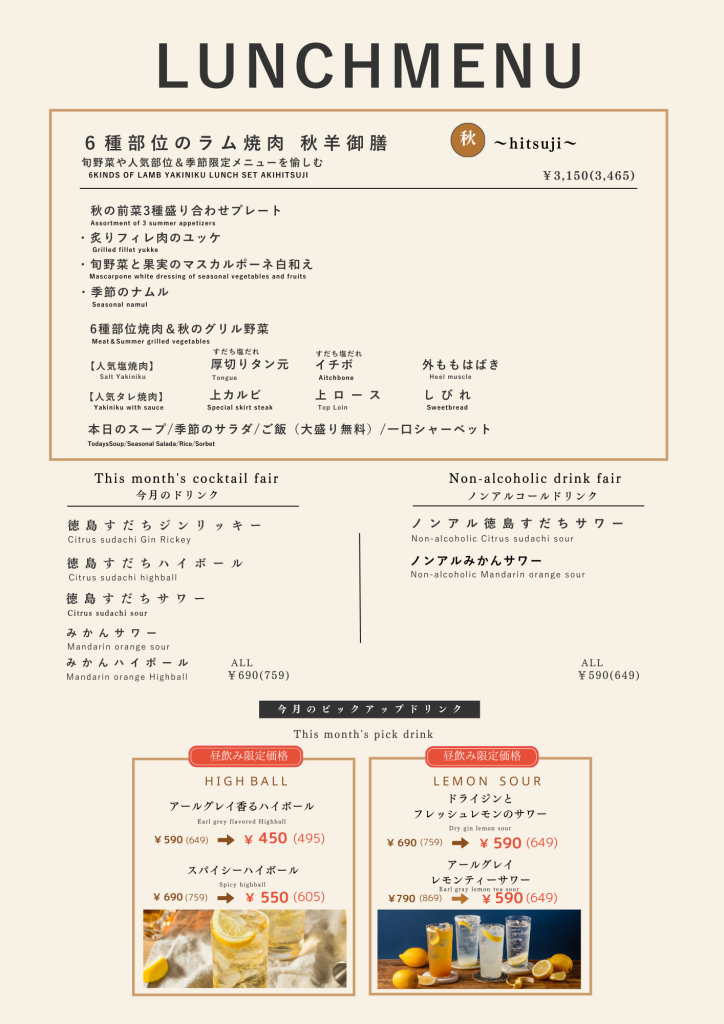 【秋限定コース】10月1日~1番人気コース王道&希少”11種部位”と歴代人気メニューが楽しめる”羊の夢を見るコース”など2種類