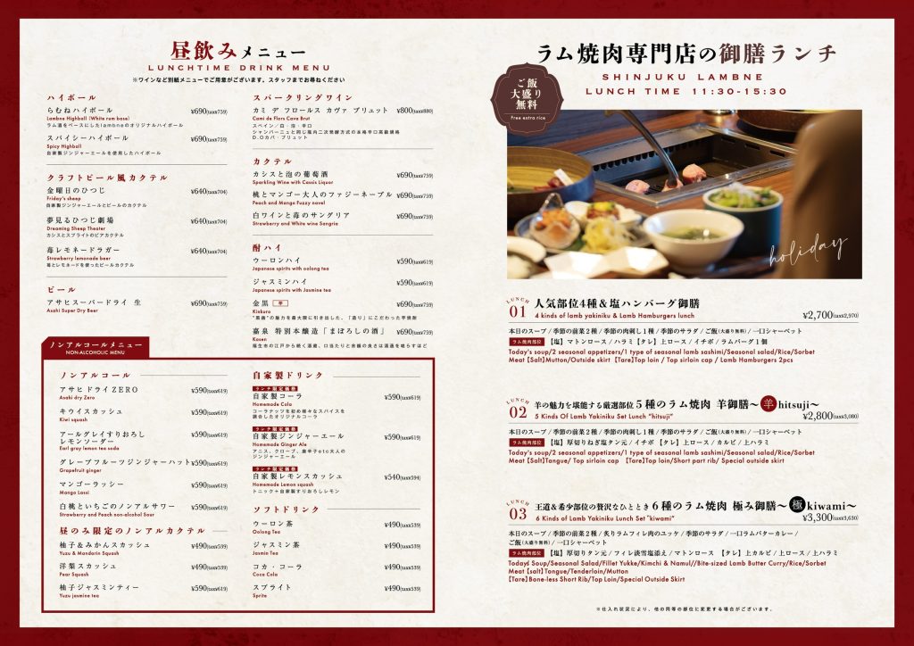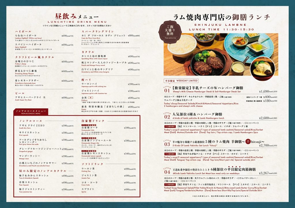 らむ焼肉専門店が本気で作ったランチタイム限定のお得なランチ 数量限定人気の100%ラムハンバーグが 12月1日リニューアルスタート! 平日限定「羊乳チーズのWハンバーグ御膳」1,690円(税抜) ランチ限定のラム肉御膳はlambneだけ! もちろん昼飲みも大歓迎です!! A lamb yakiniku specialty restaurant has created a special, limited-time lunch menu! The popular 100% lamb burger, available in limited quantities, relaunches on November 12th! "Double Lamb Burger Set with Sheep's Milk Cheese & Savory Salt" 1,690 yen (excluding tax) This lamb meat set is only available at lambne during lunchtime! Of course, daytime drinking is also very welcome!!