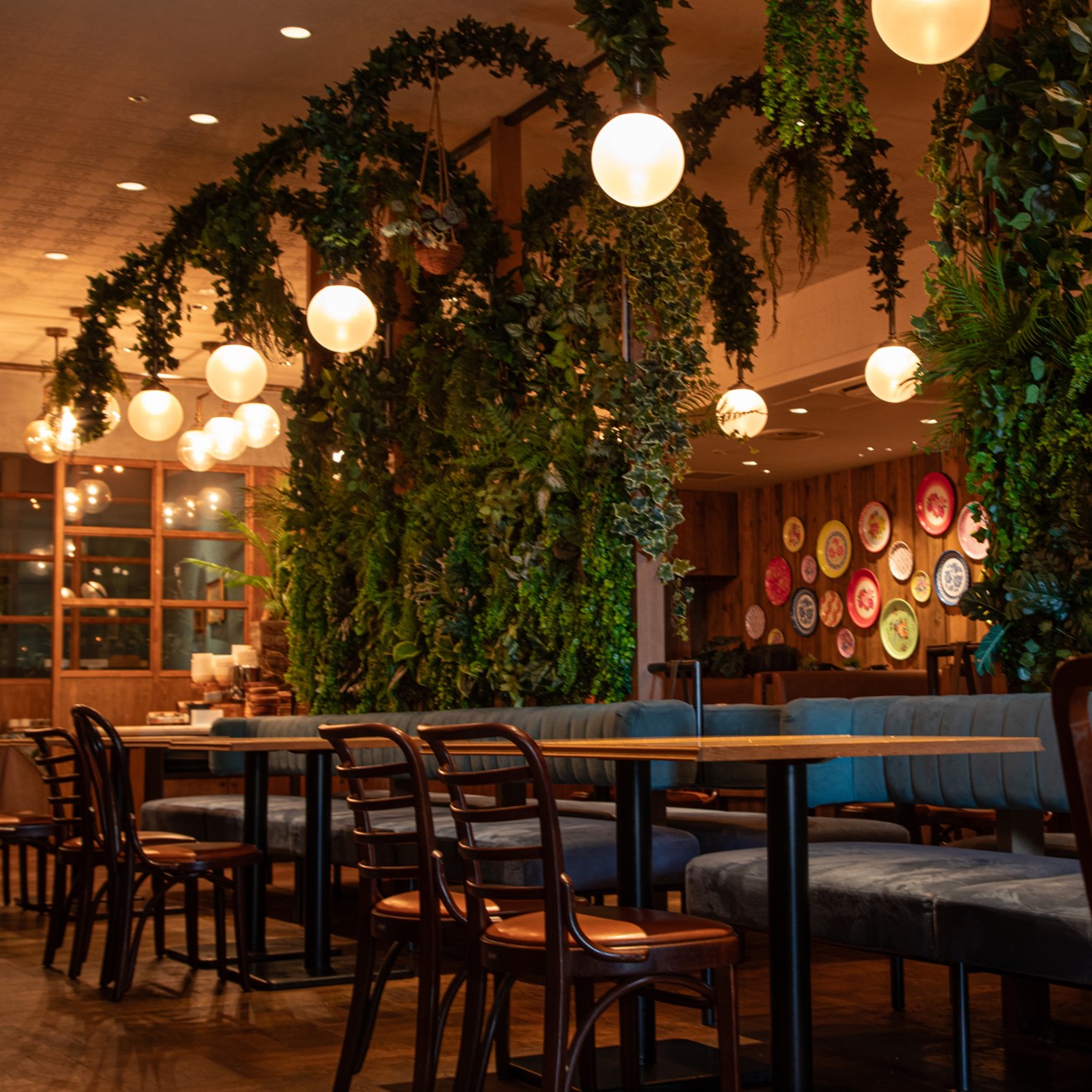 都会の喧騒を忘れさせてくれる癒やしのグリーン空間。ナチュラルな木材と植物に囲まれたインテリアは、まるでアジアの森の中にいるような感覚に。自然体で過ごせるこのエリアは、リラックスしたランチタイムからナチュラル志向の女子会、グループでのカジュアルな飲み会にもぴったり。香り高いスパイス料理やオリジナルカクテルとともに、五感で楽しむアジアンリゾート体験をお楽しみください。