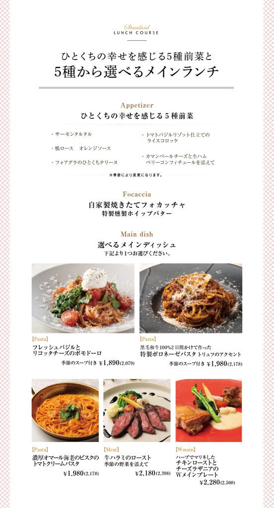 ・土日祝のランチご予約はコースのみの受付となります。