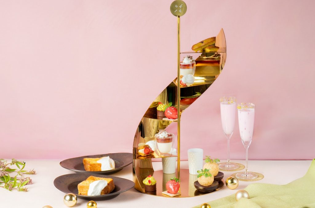 鏡面プレートの上に、雲に見立てたクラウドムースケーキを大切な方にテラス席では空と夜景が映り込み浮遊感のある特別なひとときとなります