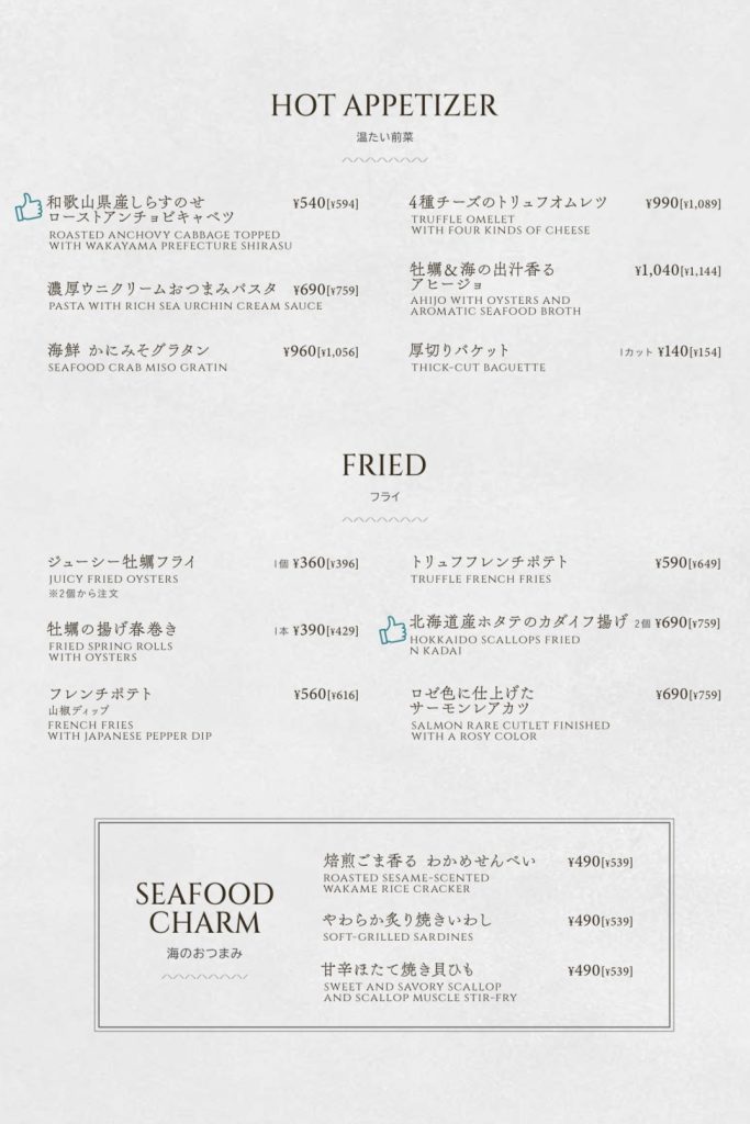 ・当店ではお客様の安全を第一に考え、アレルギーの対応を行っておりません。すべてのメニューがひとつの厨房内で調理をおこなっており、食器、調理器具などへの付着によりアレルゲン物質が混入する可能性があり、アレルギーをお持ちのお客様に安全なお料理はご提供できません。