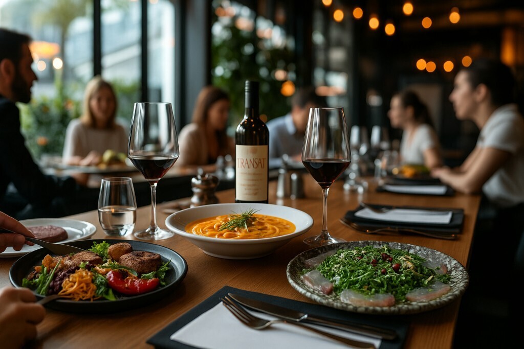 窓際席ではに空と夜景が映り込み浮遊感のある特別なひとときとなります