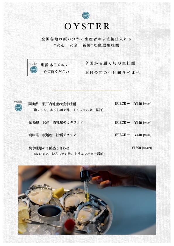 オイスターバーだからこそ実現できる、素材へのこだわりと、調理の技が光る珠玉のラインナップです。