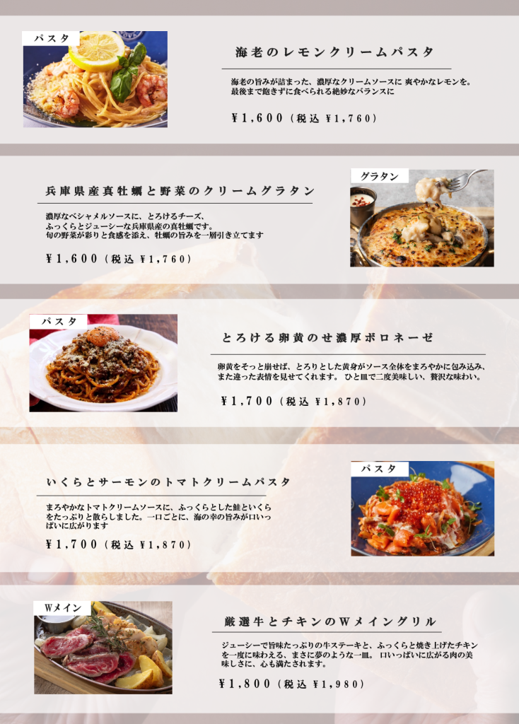 - クリーミーなソースと牡蠣の相性抜群な「牡蠣グラタン」*など、様々な火入れをした牡蠣の食感・風味の違いをご堪能ください。