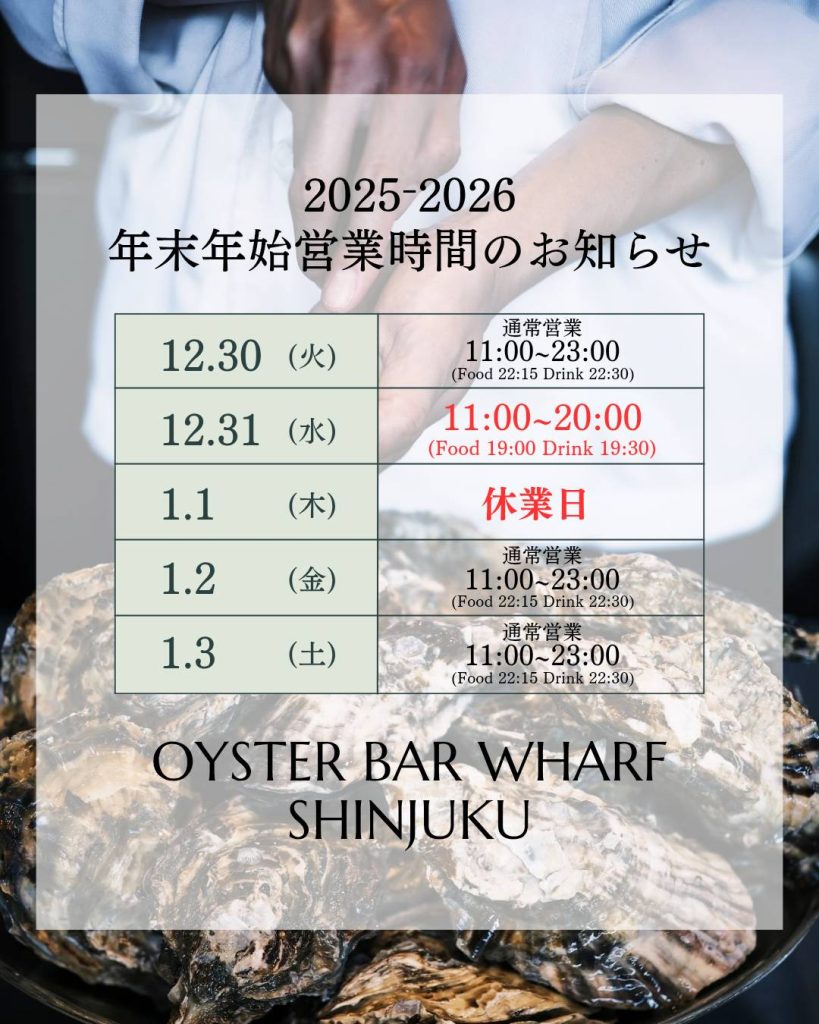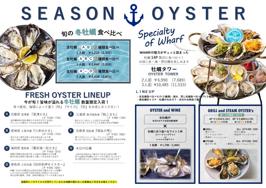 NEWoMan新宿内。新宿駅直結の利便性。オイスターバーワーフは日本各地の熱い想いを持った生産者から、厳選された牡蠣が届きます。牡蠣の選定は現地の生産者に会い、牡蠣のコンディションを教えてもらいます。そこで生産者の牡蠣に対する愛情の分だけ、美味しく立派に育つことを知りました。私たちは、愛情を込めて育てられた牡蠣を最良の状態でお客様にお届けする使命があり、牡蠣を通じて、お客様と生産者の笑顔を集めます。ランチメニューでは、毎日手包みのこだわりが詰め込まれた『牡蠣フライ定食』が1番人気です。もちろん『牡蠣×ワイン』という贅沢も大歓迎。大切な人、気の合う仲間と、旬の牡蠣を美味しく、楽しく召し上がりください。