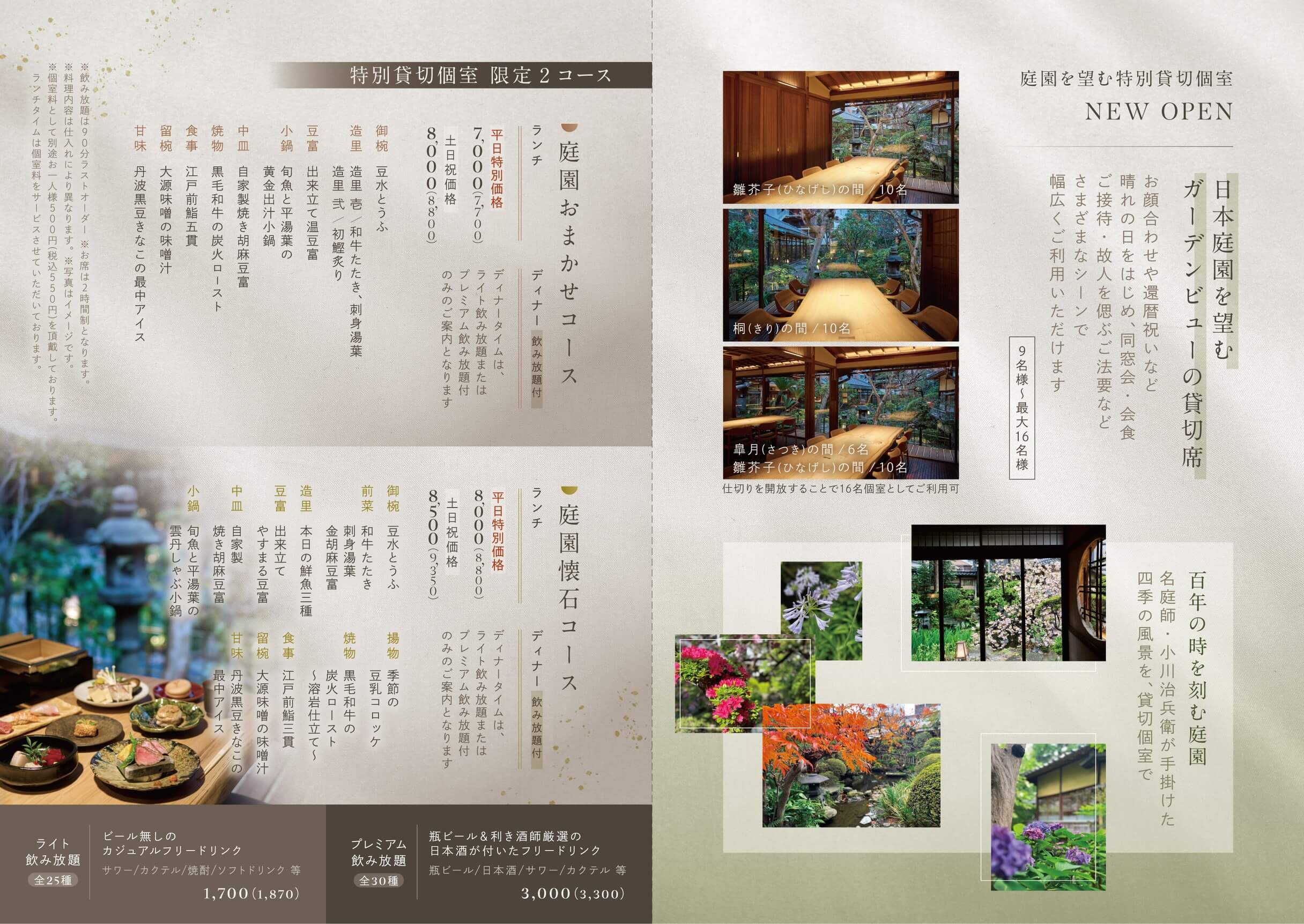 【庭園個室 NEWオープン!】大正三年建築 × 名庭師・小川治兵衛の日本庭園を望むガーデンビュー個室席 誕生!