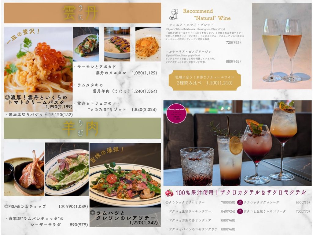 10月 好評につき 季節のおすすめ 『雲丹』『ラム』メニューと『100%果汁使用のザクロカクテル』フェア