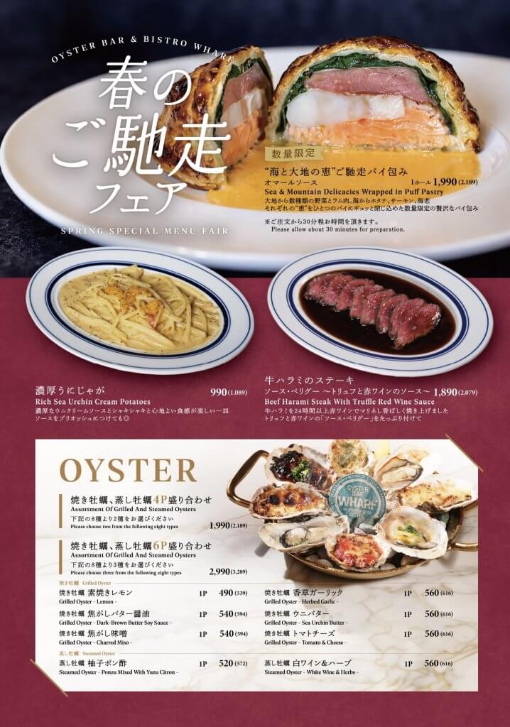 『Oyster&Bistro記念日』BBDコース 選べる乾杯ドリンク&記念日プレート付”フォアグラマカロン”入り前菜7種+雲丹パスタ,国産牛2種食べ比べ含む厳選 全14品記念日コース